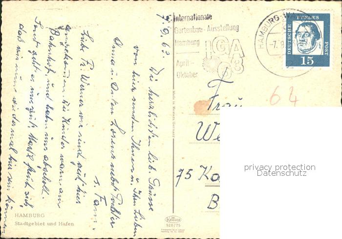 72276835 Hamburg Fliegeraufnahme Hafen postalisch nicht gelaufen Erhaltung siehe scans Alte Ansichtskarte Postkarte Matt Katcode 11110002000000
