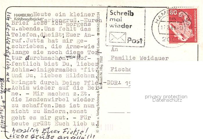 73166003 alte Postkarte Hamburg Fliegeraufnahme Kohlbrandbruecke postalisch gelaufen Erhaltung siehe scans [KathaD81] KatCode: 11110002000000