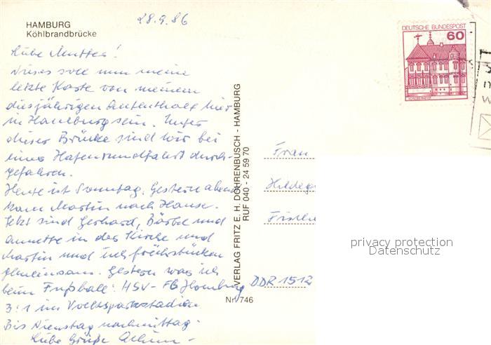 73166005 alte Postkarte Hamburg Fliegeraufnahme Kohlbrandbruecke postalisch gelaufen Erhaltung siehe scans [KathaD81] KatCode: 11110002000000