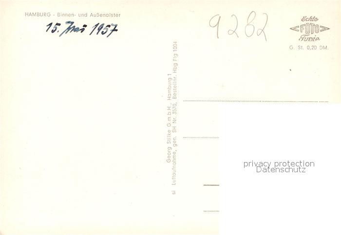 73072231 Hamburg Fliegeraufnahme mit Binnen und Aussenalster postalisch nicht gelaufen Erhaltung siehe scans [WerneD78] KatCode: 11110002000000