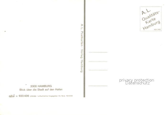 73613770 Hamburg Fliegeraufnahme mit Hafen postalisch nicht gelaufen Erhaltung siehe scans [LiesaD40] KatCode: 11110002000000