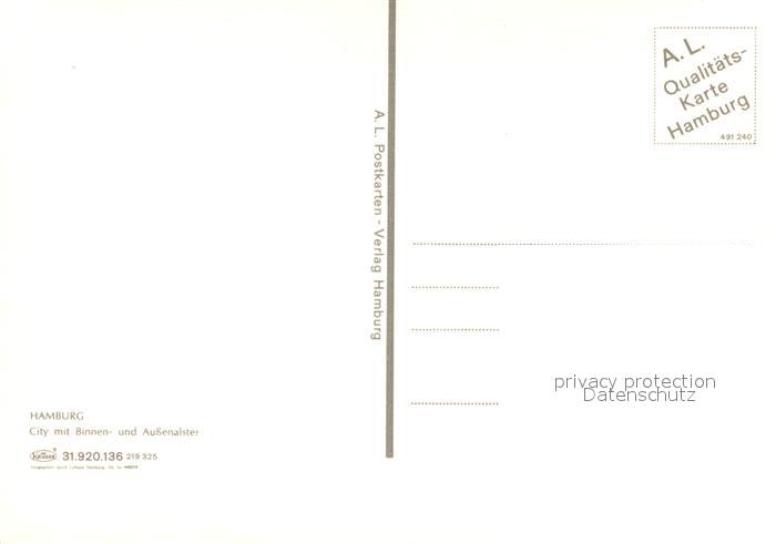 73613771 Hamburg Fliegeraufnahme mit Innen- und Aussenalster postalisch nicht gelaufen Erhaltung siehe scans [LiesaD40] KatCode: 11110002000000