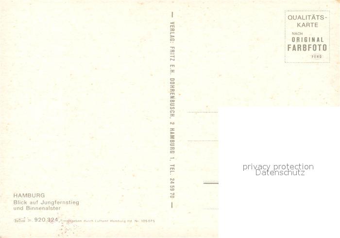 73321069 Hamburg Fliegeraufnahme mit Jungfernstieg und Binnenalster postalisch nicht gelaufen Erhaltung siehe scans [WerneD78] KatCode: 11110002000000