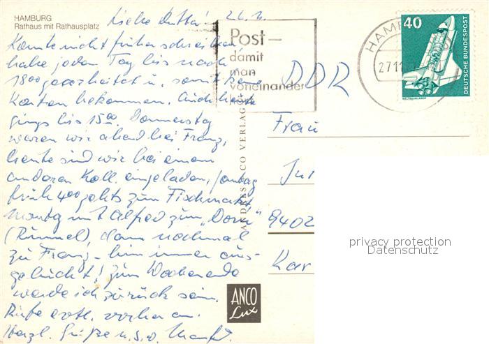 73081559 alte Postkarte Hamburg Fliegeraufnahme Rathaus Rathausplatz postalisch gelaufen Erhaltung siehe scans [KathaD81] KatCode: 11110002000000