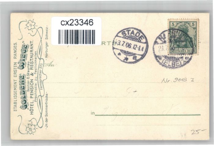 30752078 alte Postkarte Hamburg ?Goldene Wiege postalisch gelaufen KatCode: 11110002000000
