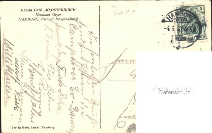 31821429 alte Postkarte Hamburg Grand Cafe Klosterburg postalisch gelaufen Erhaltung siehe scans KatCode: 11110002000000