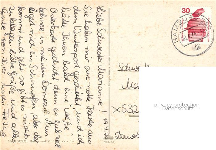 73063405 alte Postkarte Hamburg Hafen Michaeliskirche postalisch gelaufen Erhaltung siehe scans [KathaD81] KatCode: 11110002000000