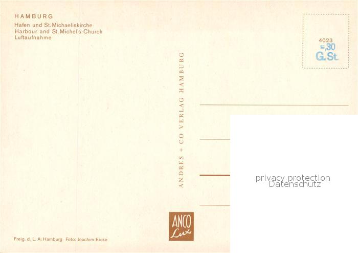 73322979 Hamburg Hafen und St Michaeliskirche Fliegeraufnahme postalisch nicht gelaufen Erhaltung siehe scans [WerneD78] KatCode: 11110002000000