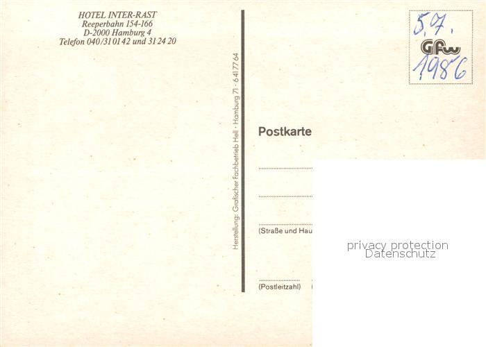 73197189 Hamburg Hotel Interrast Reeperbahn postalisch nicht gelaufen Erhaltung siehe scans [FriedD77] KatCode: 11110002000000