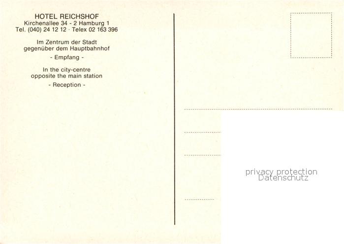 73033878 Hamburg Hotel Reichshof postalisch nicht gelaufen Erhaltung siehe scans [PaolaD17] KatCode: 11110002000000