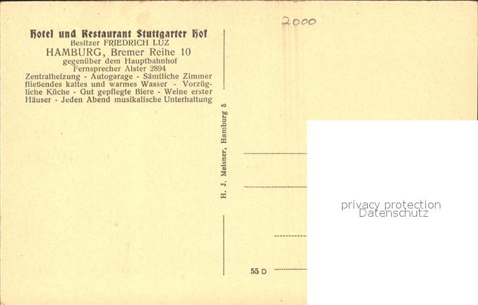 31722078 Hamburg Hotel Restaurant Stuttgarter Hof Bremer Reihe 10 Auto Friedrich Luz postalisch nicht gelaufen Erhaltung siehe scans KatCode: 11110002000000