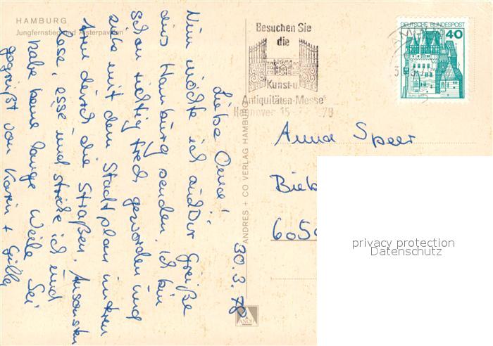 73244717 alte Postkarte Hamburg Jungfernstieg Alsterpavillon postalisch gelaufen Erhaltung siehe scans [LiesaD40] KatCode: 11110002000000