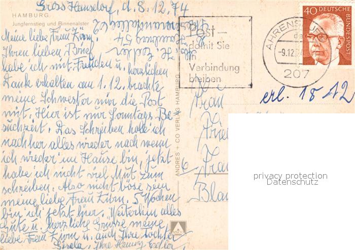 73116192 alte Postkarte Hamburg Jungfernstieg Binnenalster postalisch gelaufen Erhaltung siehe scans [NatalD47] KatCode: 11110002000000