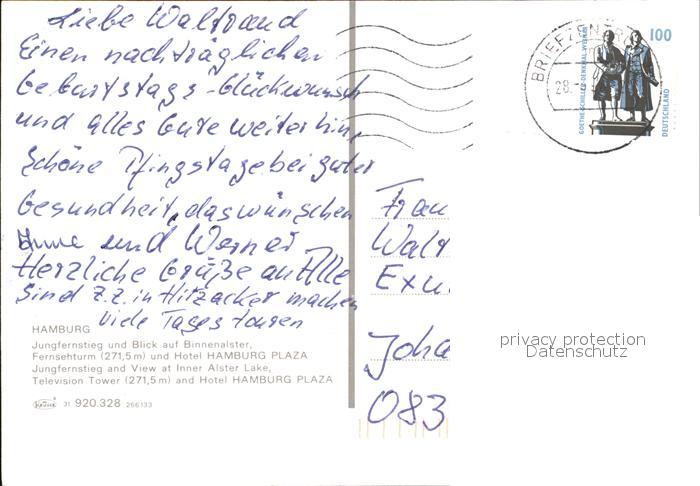 alte Postkarte Hamburg Jungfernstieg Binnenalster Fernsehturm postalisch gelaufen Erhaltung siehe scans