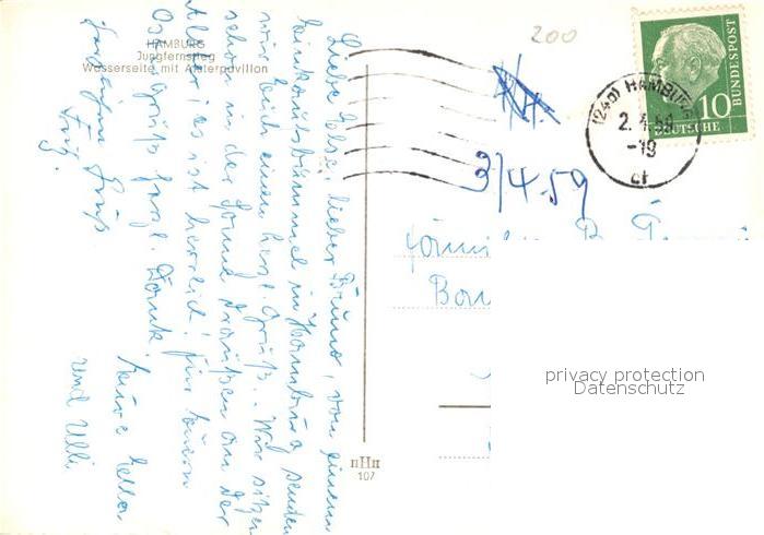 73335428 alte Postkarte Hamburg Jungfernstieg Wasserseite mit Alsterpavillon postalisch gelaufen Erhaltung siehe scans [FriedD77] KatCode: 11110002000000