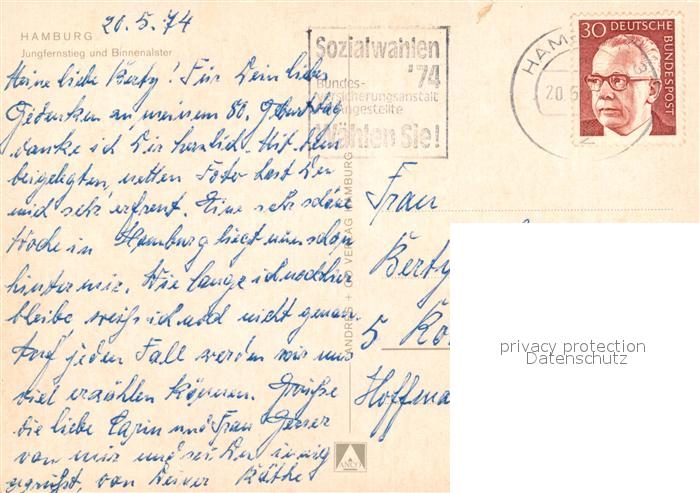 73093696 alte Postkarte Hamburg Jungfersteig Binnenalster postalisch gelaufen Erhaltung siehe scans [NatalD47] KatCode: 11110002000000
