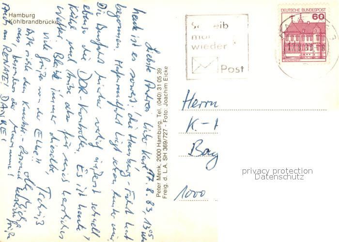 73087506 alte Postkarte Hamburg Koehlbrandbruecke Fliegeraufnahme postalisch gelaufen Erhaltung siehe scans [NatalD47] KatCode: 11110002000000
