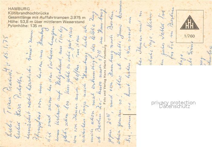 73076995 Hamburg Koehlbrandhochbruecke postalisch nicht gelaufen Erhaltung siehe scans [KathaD81] KatCode: 11110002000000