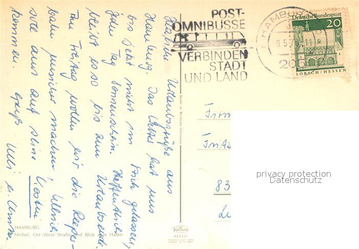 73103329 alte Postkarte Hamburg Michel Ost West Strasse und Hafen postalisch gelaufen Erhaltung siehe scans [WerneD78] KatCode: 11110002000000