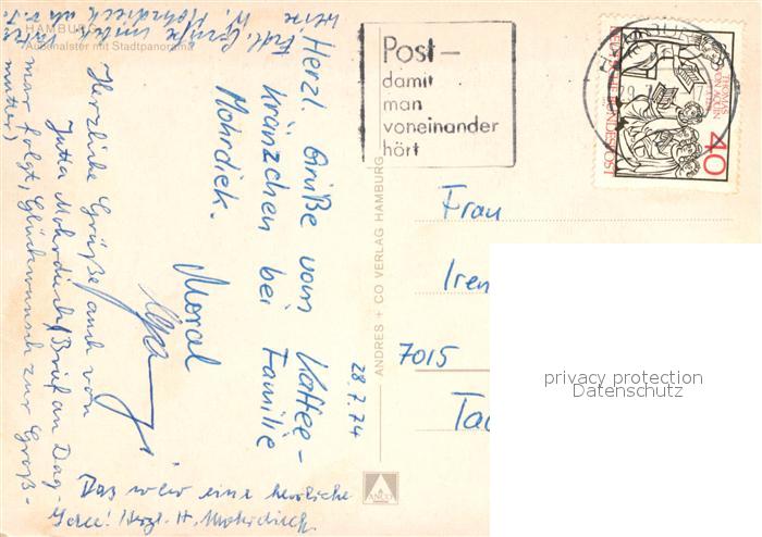 72974883 alte Postkarte Hamburg mit Aussenalster Bootssteg postalisch gelaufen Erhaltung siehe scans [LiesaD40] KatCode: 11110002000000