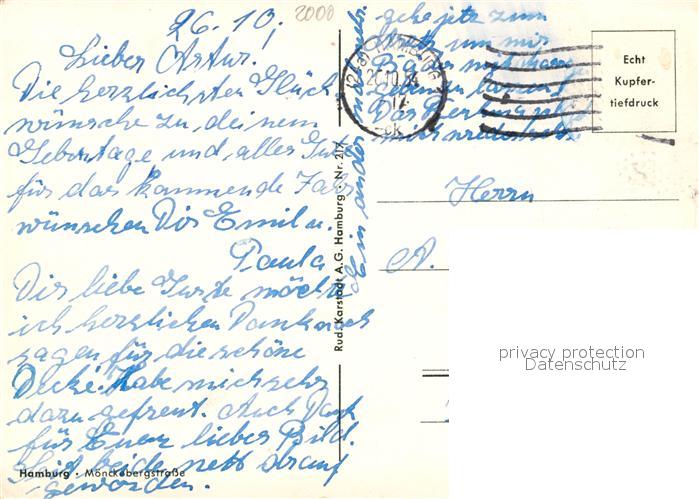 73111817 alte Postkarte Hamburg Moenckebergstrasse postalisch gelaufen Erhaltung siehe scans [NatalD47] KatCode: 11110002000000
