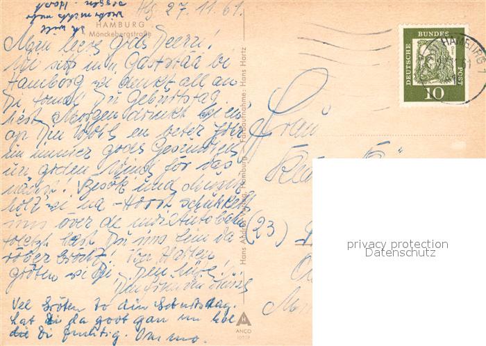 73019163 alte Postkarte Hamburg Moenckebergstrasse Brunnen Kirchturm postalisch gelaufen Erhaltung siehe scans [WerneD78] KatCode: 11110002000000