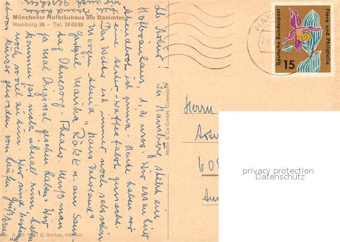 73364741 alte Postkarte Hamburg Muenchener Hofbraeuhaus am Dammtor postalisch gelaufen Erhaltung siehe scans [WerneD78] KatCode: 11110002000000