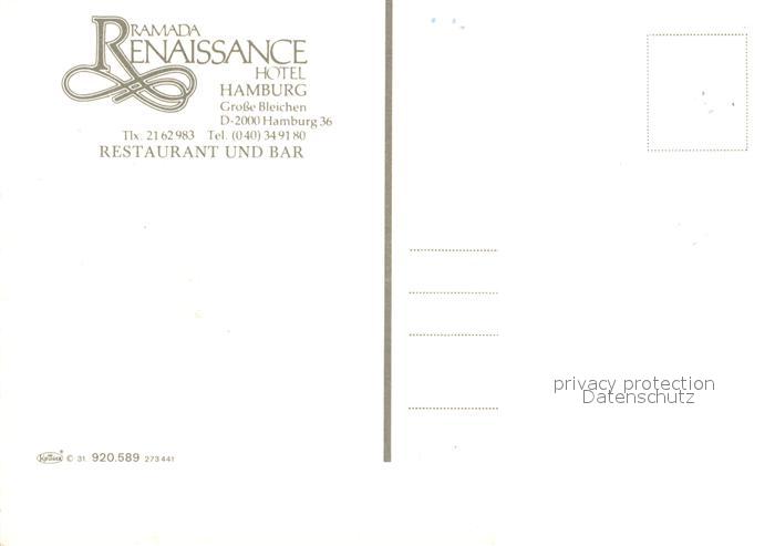 73324275 Hamburg Ramada Renaissance Hotel postalisch nicht gelaufen Erhaltung siehe scans [FriedD77] KatCode: 11110002000000