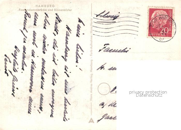 73302482 alte Postkarte Hamburg Reesendammbruecke und Binnenalster postalisch gelaufen Erhaltung siehe scans [FriedD77] KatCode: 11110002000000