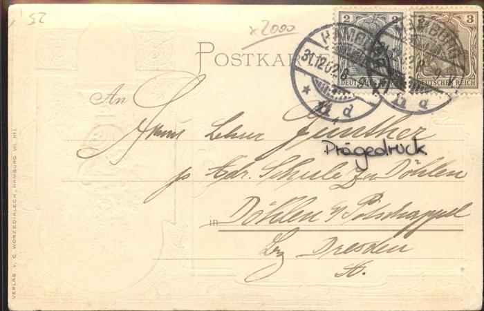 41057699 Hamburg Reimersbrücke Katharinenkirche Neujahr Wappen Prägedruck KatCode 11110002000000