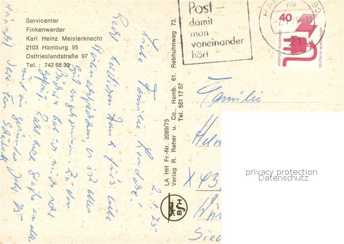73615977 alte Postkarte Hamburg Servicecenter Vinkenwerder Fliegeraufnahme postalisch gelaufen Erhaltung siehe scans [WerneD78] KatCode: 11110002000000