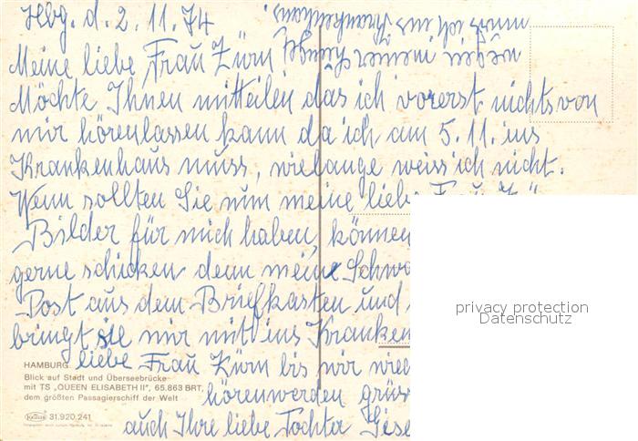 73123039 Hamburg Stadt ueberseebruecke TS Queen Elisabeth II postalisch nicht gelaufen Erhaltung siehe scans [KathaD81] KatCode: 11110002000000