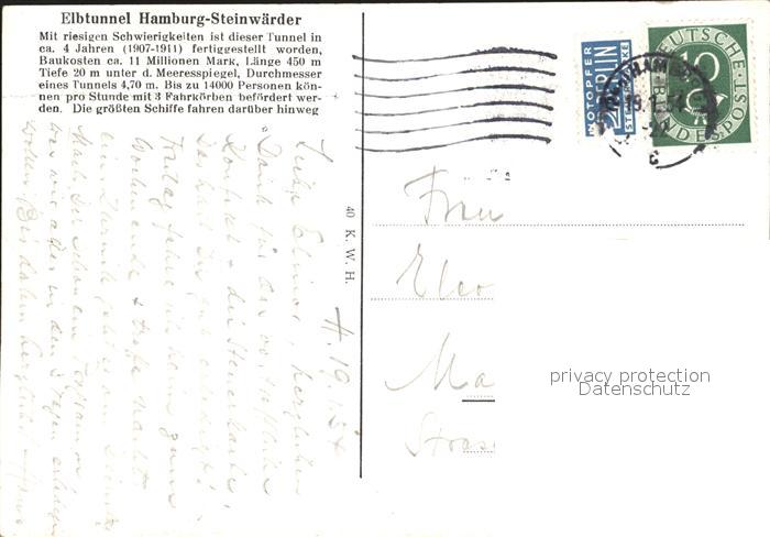 72120071 alte Postkarte Hamburg Steinwaerder Elbtunnel postalisch gelaufen Erhaltung siehe scans KatCode: 11110002000000