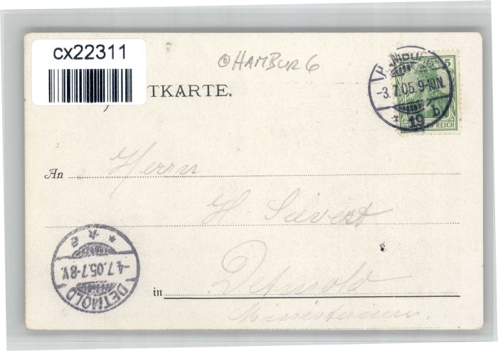 30738506 alte Postkarte Hamburg [Stempelabschlag] postalisch gelaufen KatCode: 11110002000000