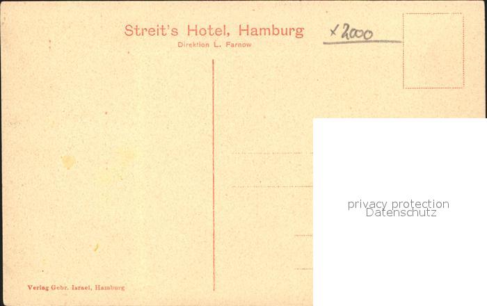 31821343 Hamburg Streits Hotel Restaurant postalisch nicht gelaufen Erhaltung siehe scans KatCode: 11110002000000