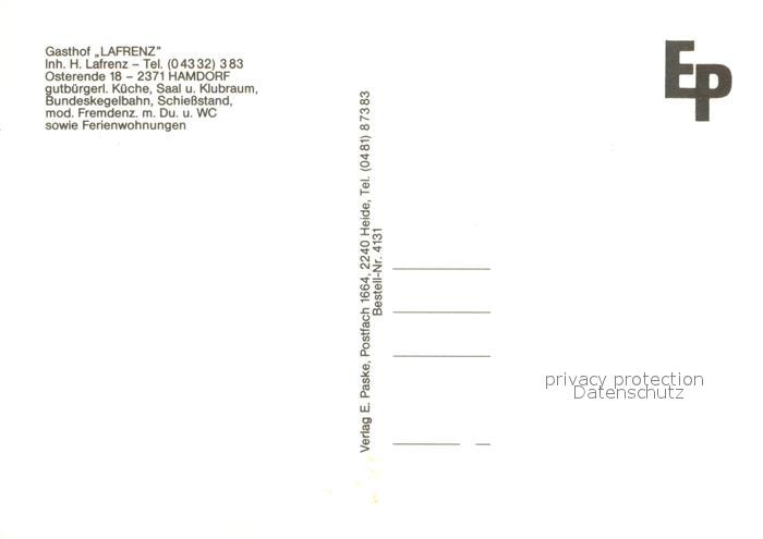 73648880 Hamdorf Gasthof Lafrenz Restaurant Kegelbahn postalisch nicht gelaufen Erhaltung siehe scans [FriedD77] KatCode: 11110001060059