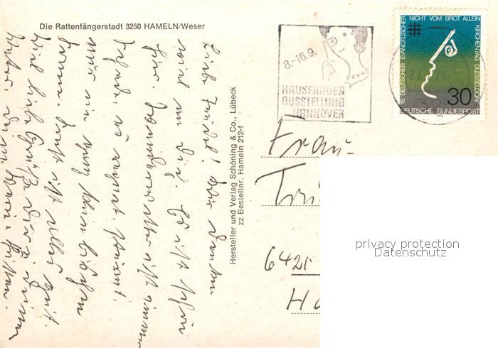 73040701 alte Postkarte Hameln Weser postalisch gelaufen Erhaltung siehe scans [NatalD47] KatCode: 11110003252006