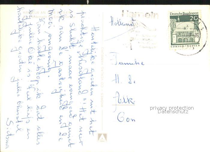 72230038 alte Postkarte Hameln Weser Am Pferdemarkt mit Emmernstrasse Fachwerkhaus postalisch gelaufen Erhaltung siehe scans KatCode: 11110003252006