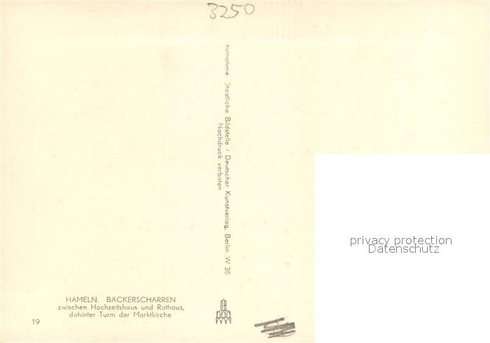 73693459 Hameln Weser Baeckerscharren zwischen Hochzeitshaus und Rathaus mit Turm der Marktkirche postalisch nicht gelaufen Erhaltung siehe scans [WerneD78] KatCode: 11110003252006