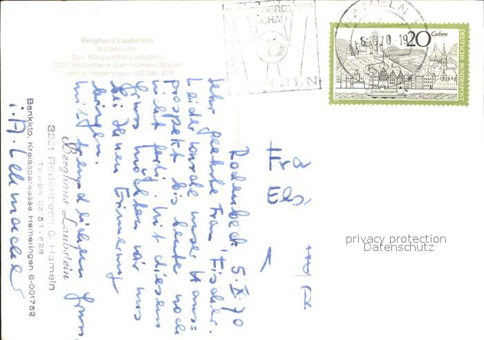 72353536 alte Postkarte Hameln Weser Berghaus Laubstein Rodenbeck postalisch gelaufen Erhaltung siehe scans KatCode: 11110003252006