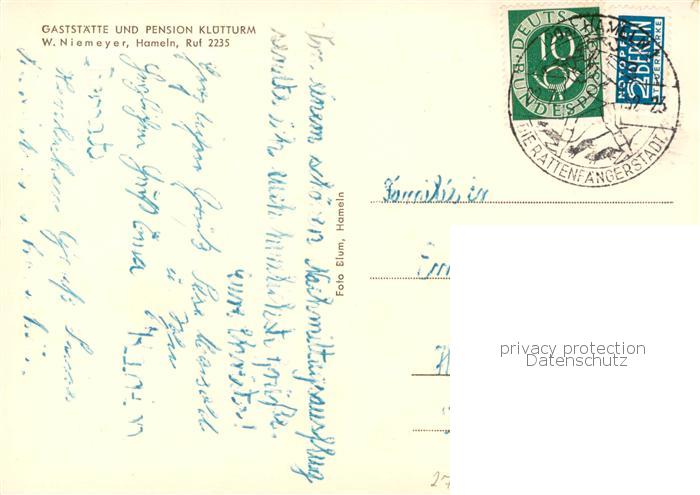 73854552 alte Postkarte Hameln Weser Blick vom Kluet postalisch gelaufen Erhaltung siehe scans [WerneD78] KatCode: 11110003252006
