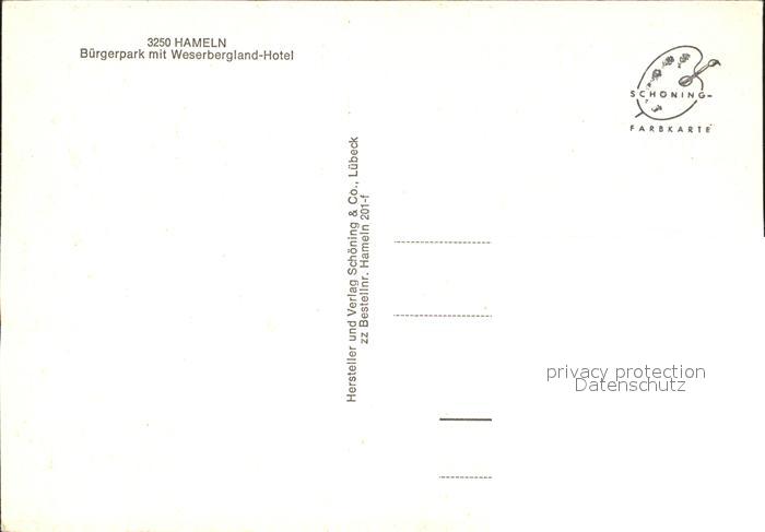 72220740 Hameln Weser Buergerpark mit Weserbergland Hotel postalisch nicht gelaufen Erhaltung siehe scans KatCode: 11110003252006