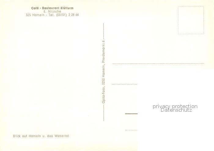 73626769 Hameln Weser Caf? Restaurant Kl?tturm postalisch nicht gelaufen Erhaltung siehe scans [LiesaD40] KatCode: 11110003252006
