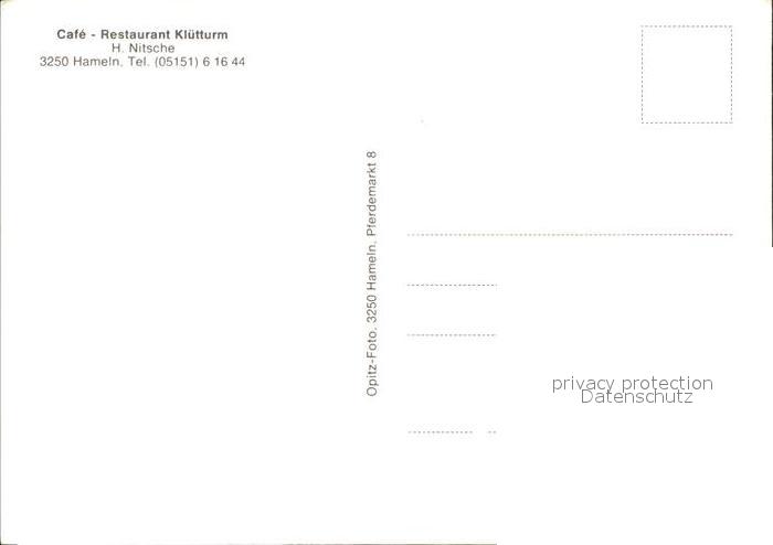 72032099 Hameln Weser Cafe-Restaurant Kluetturm postalisch nicht gelaufen Erhaltung siehe scans KatCode: 11110003252006