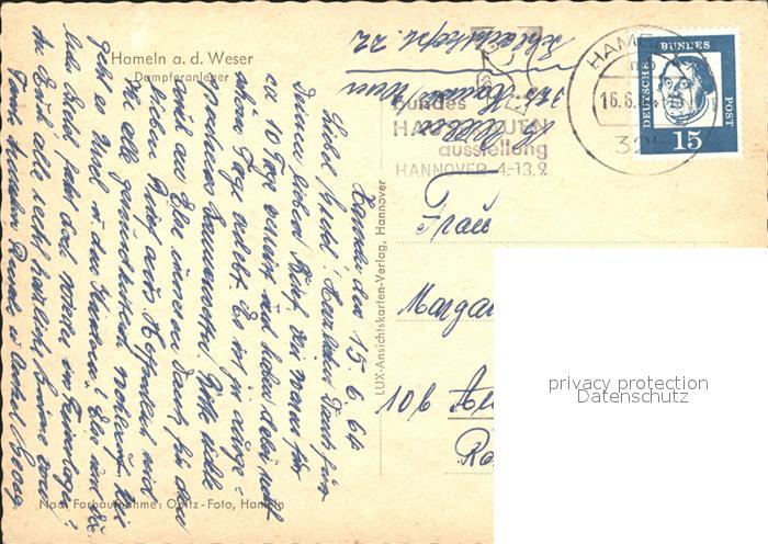 72314709 alte Postkarte Hameln Weser Dampferanleger postalisch gelaufen Erhaltung siehe scans KatCode: 11110003252006