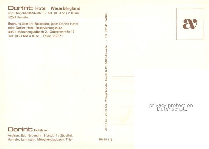 73090266 Hameln Weser Dorint Hotel Weserbergland postalisch nicht gelaufen Erhaltung siehe scans [PaolaD17] KatCode: 11110003252006