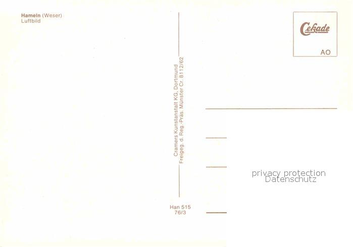 72895527 Hameln Weser Fliegeraufnahme postalisch nicht gelaufen Erhaltung siehe scans [WerneD78] KatCode: 11110003252006