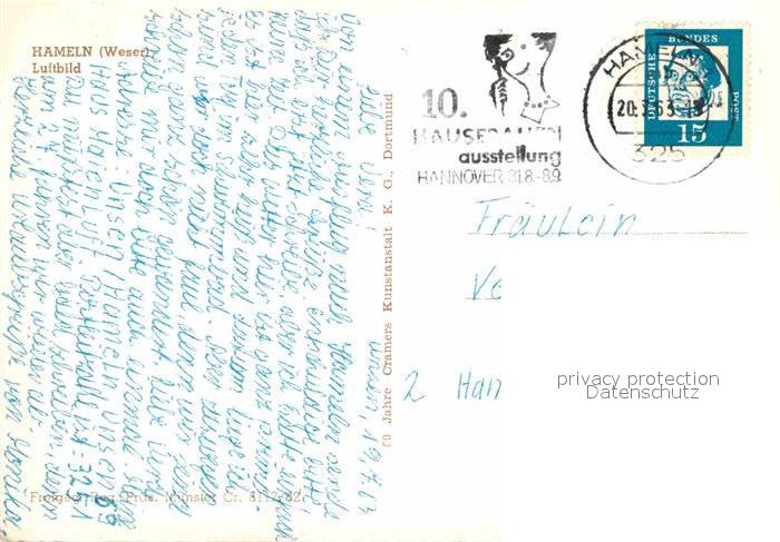 72847064 alte Postkarte Hameln Weser Fliegeraufnahme postalisch gelaufen Erhaltung siehe scans [NatalD47] KatCode: 11110003252006