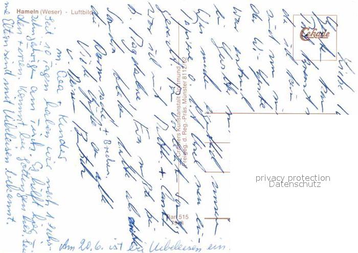 72636782 Hameln Weser Fliegeraufnahme postalisch nicht gelaufen Erhaltung siehe scans [NatalD47] KatCode: 11110003252006