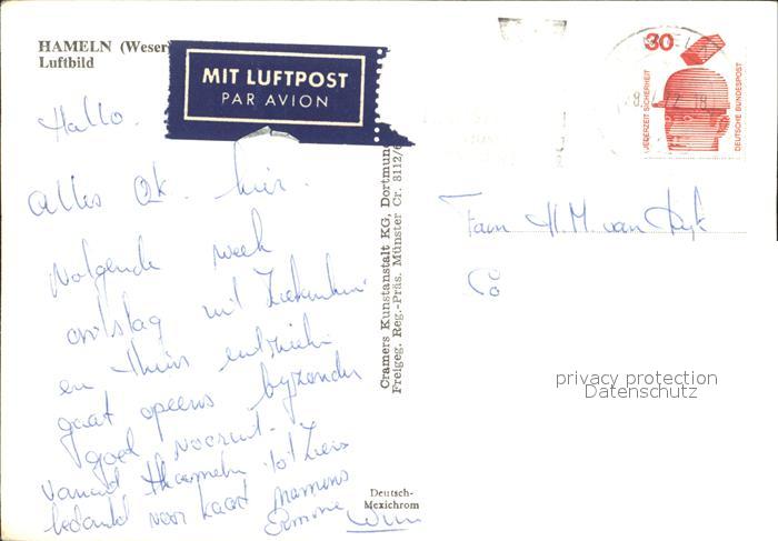72378729 alte Postkarte Hameln Weser Fliegeraufnahme postalisch gelaufen Erhaltung siehe scans KatCode: 11110003252006